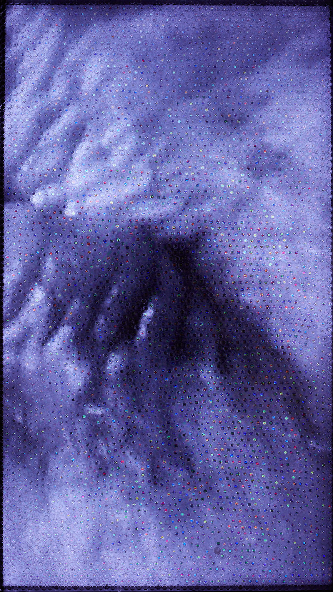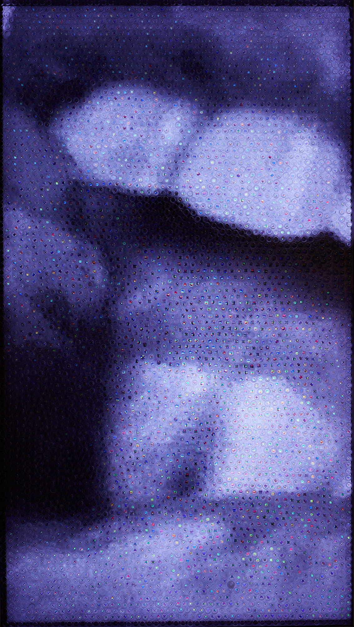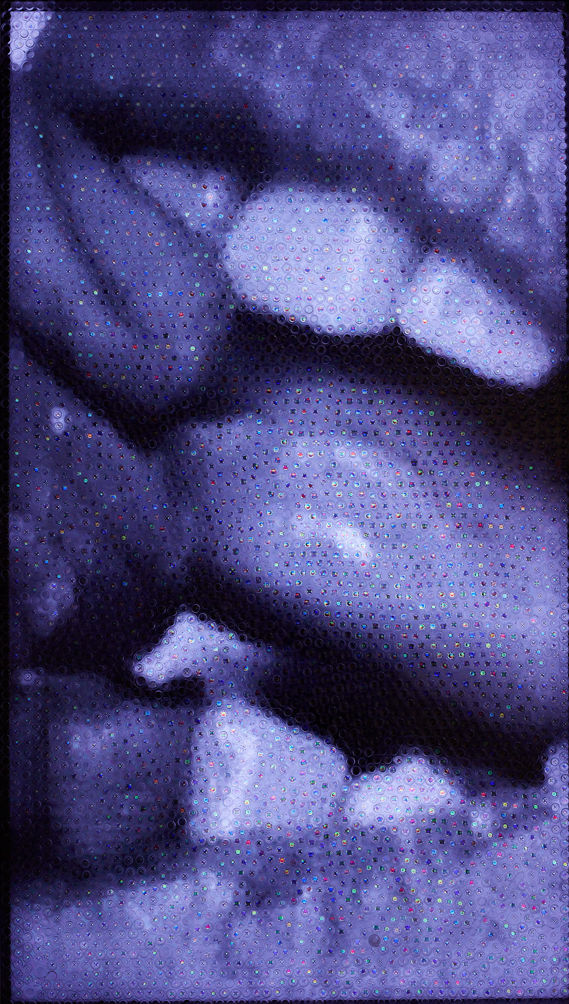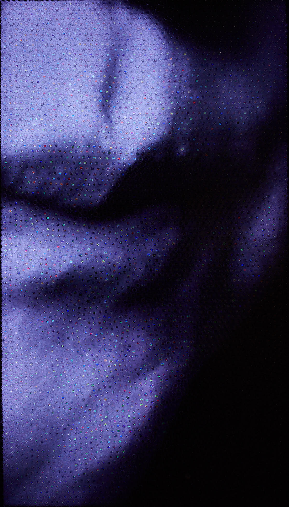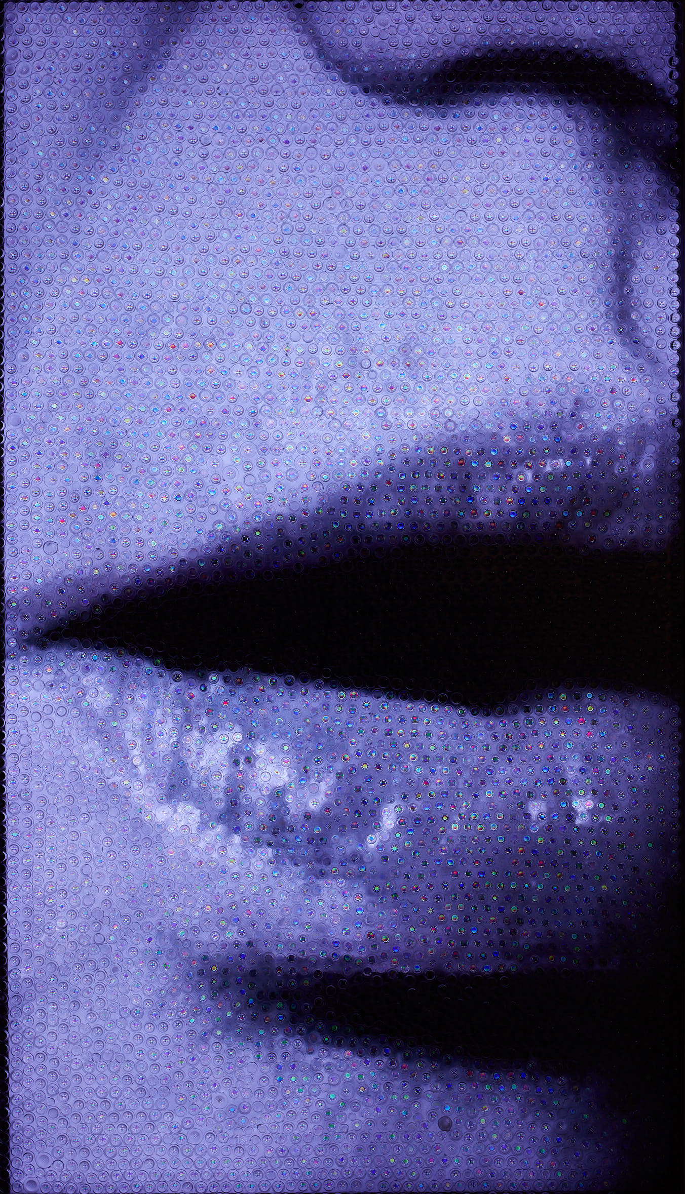 Picture Element deliberately slows the circulation of images. Lenses salvaged from used disposable cameras, placed in front of a video of mouths eating, transform the screen into an unstable, hypnotic optical surface. The image only reveals itself through the viewer’s movement and the time they are willing to grant it. Presented like a storefront advertising screen, the installation diverts a device intrinsic to the attention economy: the mouths, associated with bodies historically monitored, disciplined, and sexualized, are neither offered nor consumable. Filtered and slowed down, they elude regimes of visibility that demand clear, fast, and immediately available images.